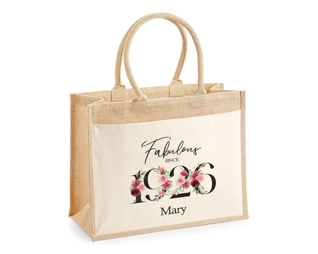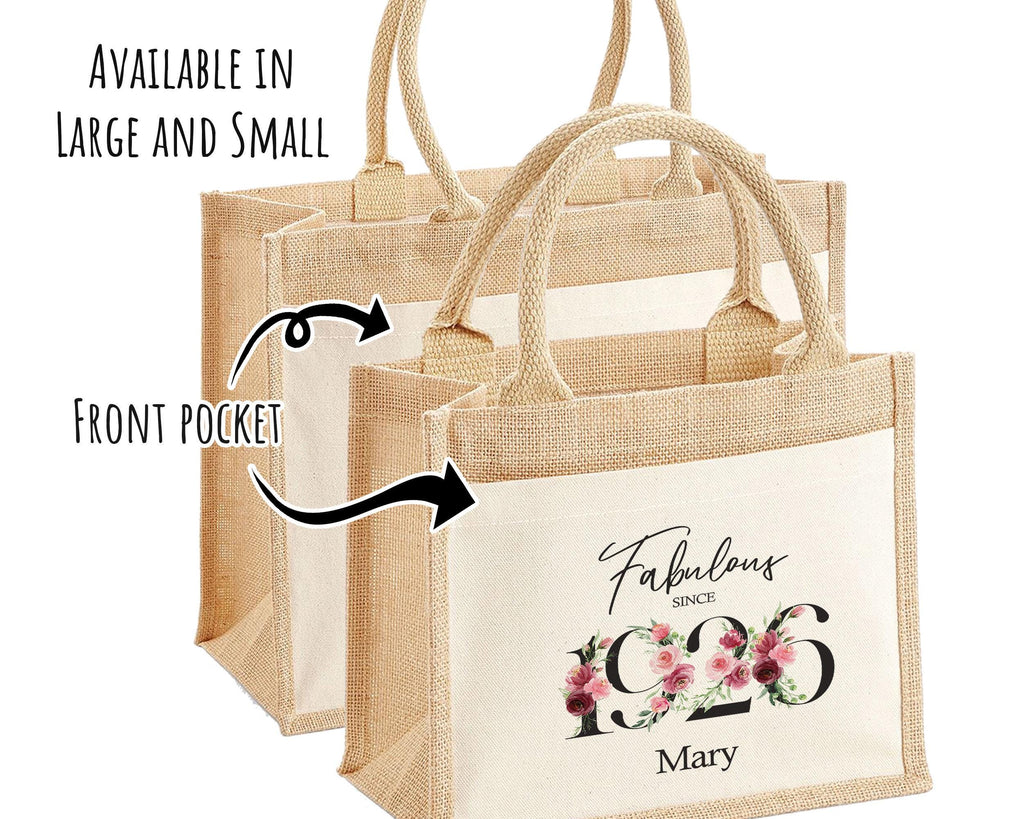 Our stylish personalised jute bags make a great gift for 100th Birthday gift for women. We can add any name or message, and offer both a small and large tote bag option. It really is the perfect gift for her.