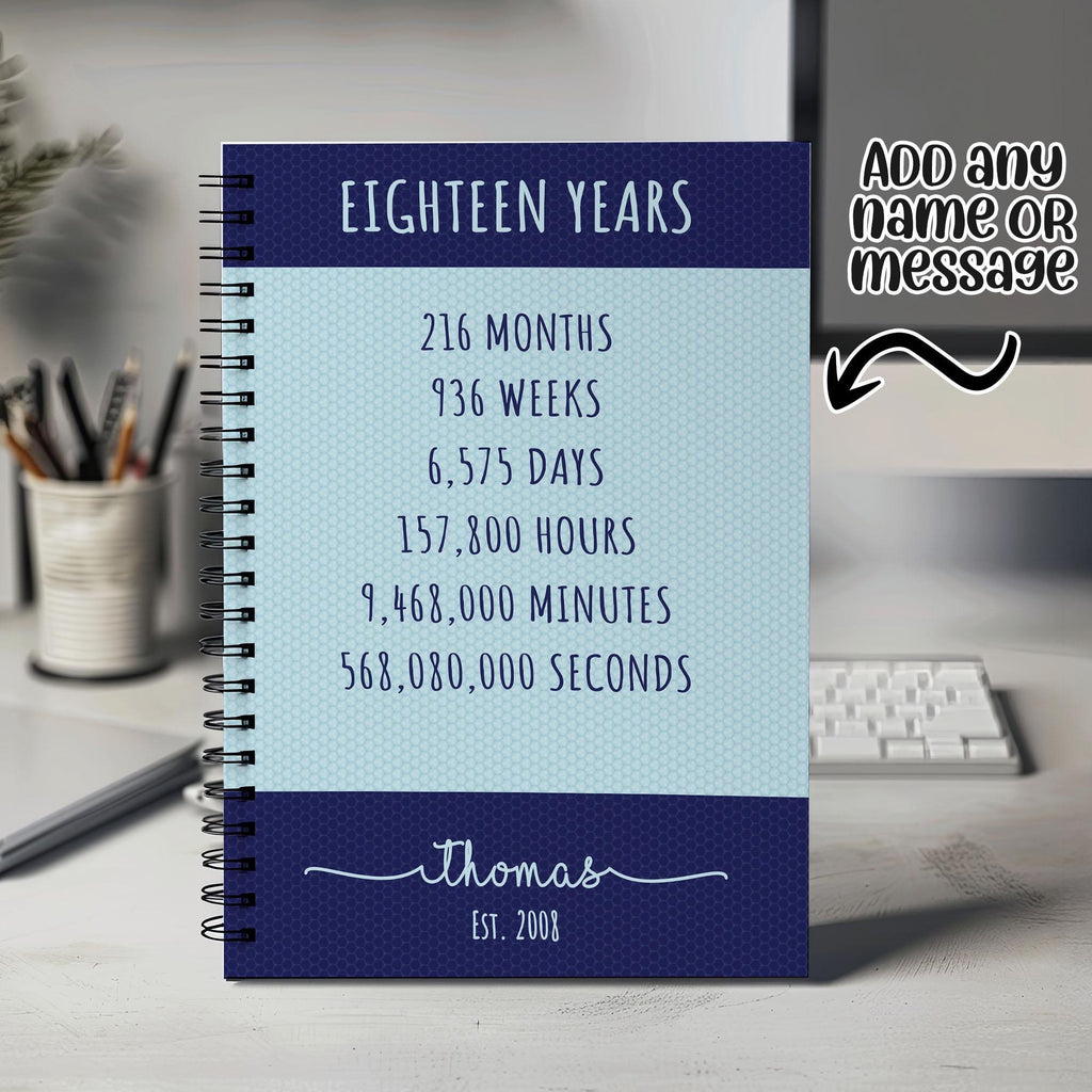 Our 18th birthday notebook is sure to make an amazing keepsake gift, and perfect to mark such an amazing milestone - Designed with measurements of time, it will look great in any mans home - Ideal for Dad, Grandad, Brothers, or family friends.