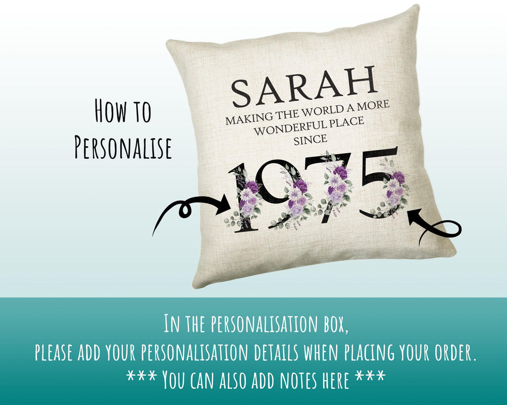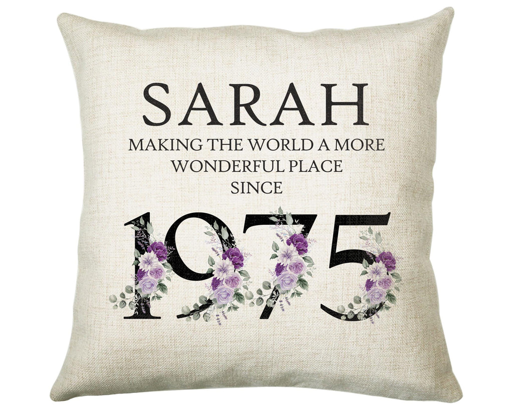 50th Birthday Gift for Women - Personalised 1975 Birthday Cushion Age 50 Gift for Her - Ladies Floral Design Mum Nan Sister Fifty BNQ50C