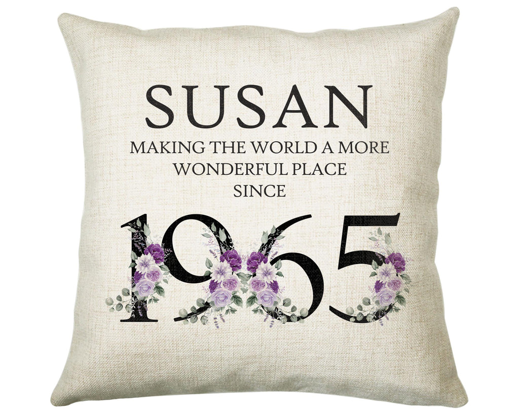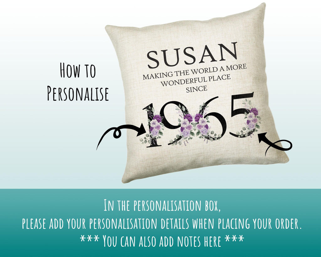 60th Birthday Gift for Women - Personalised 1965 Birthday Cushion Age 60 Gift for Her - Ladies Floral Age Design Mum Nan Gran Sixty BNQ60C