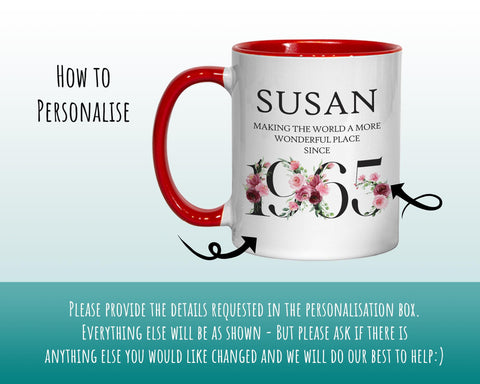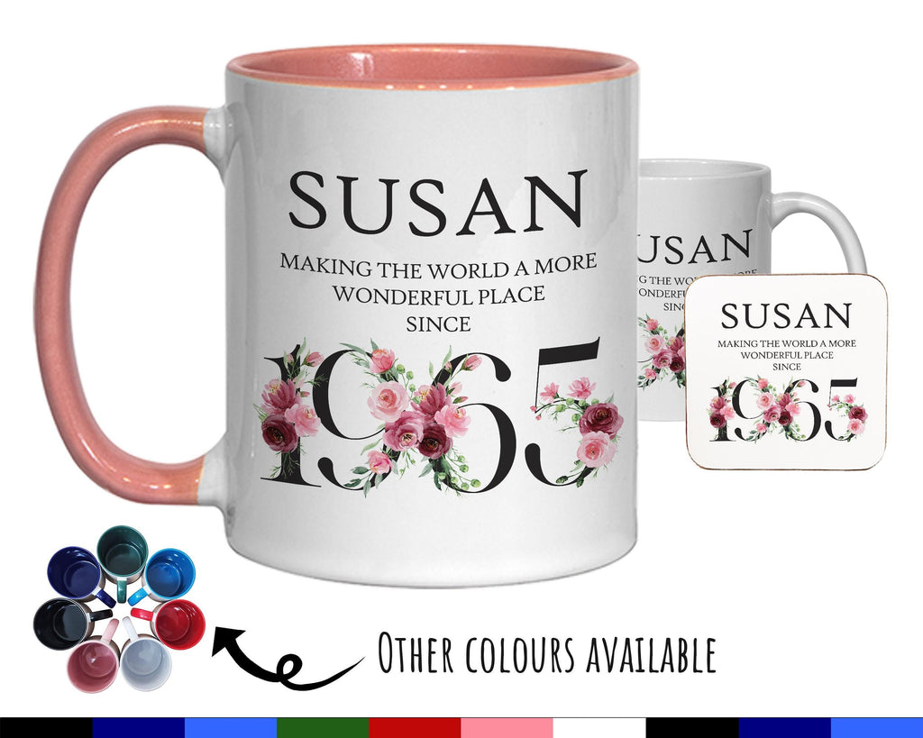 Our 60th birthday coffee mugs and coasters are sure to make an amazing keepsake gift, and perfect to mark such an amazing milestone - Designed with a feminine floral 1965 design, it will look wonderful in any ladies home - Ideal for Mum, Nan, Grandma or family friends. Available with or without matching coaster.