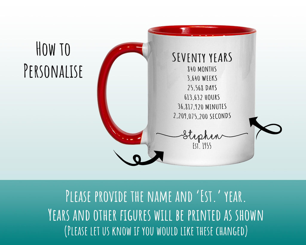 Our 70th birthday coffee mugs and coasters are sure to make an amazing keepsake gift, and perfect to mark such an amazing milestone - Designed with a minimalist text design, it will look wonderful in any mans home - Ideal for sons, brothers or family friends. Available with or without matching coaster.