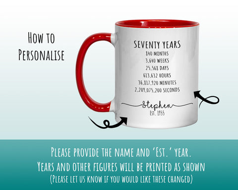 Personalised with any name or message - We can also add any age (please advise if different to the Seventy Years design shown).