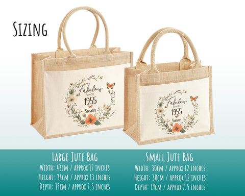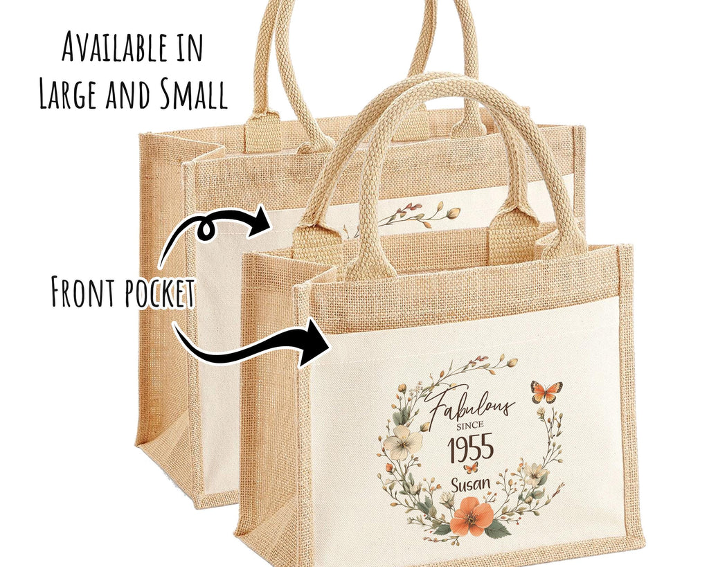 Our stylish personalised jute bags make a great gift for 70th Birthday gift for women. We can add any name or message, and offer both a small and large tote bag option. It really is the perfect gift for her.