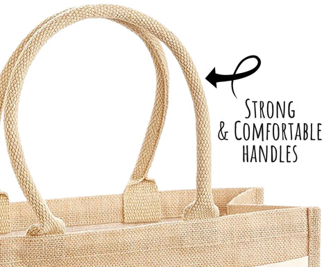 Materials: Jute Tote Bag, Strong Handles, Premium Material.