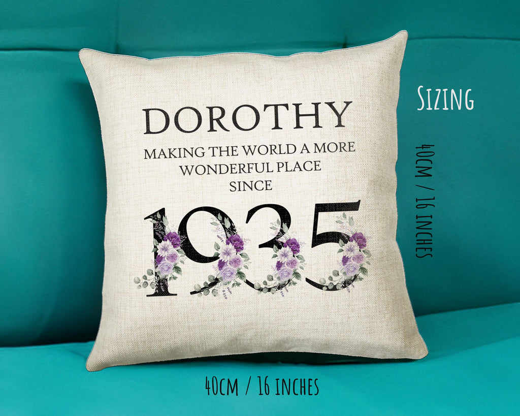90th Birthday Gift for Women - Personalised 1935 Birthday Cushion Age 90 Gift for Her - Ladies Floral Age Design Mum Nan Gran Ninety BNQ90C