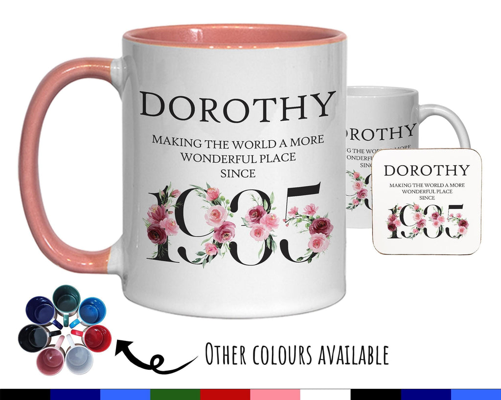 90th Birthday Gift for Women - Wonderful Since 1935 Personalised Coffee Mug Coaster 90 Gift for Her - Ladies Floral Design Nan Gran BND90M