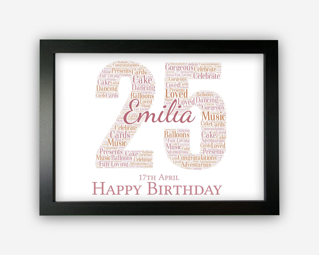 Personalised 25th Birthday Gifts Word Art Wall Print - For Girls Gifts Wall Decor Custom Word Cloud Wall Art A3 A4 A5 8x10 Print SC0224