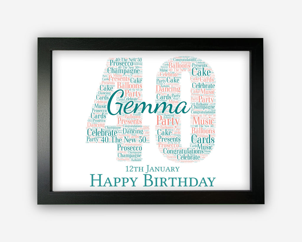 Personalised 40th Birthday Gifts Word Art Wall Print - For Women Gifts Wall Decor Custom Word Cloud Wall Art A3 A4 A5 8x10 Print SC0168