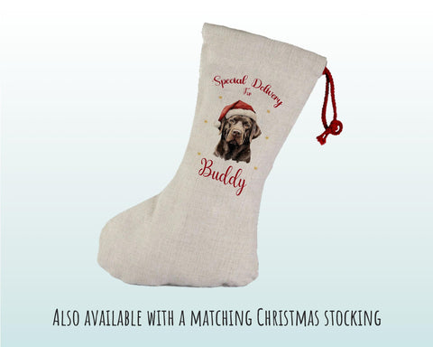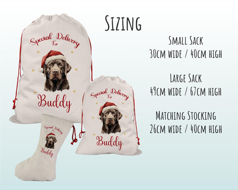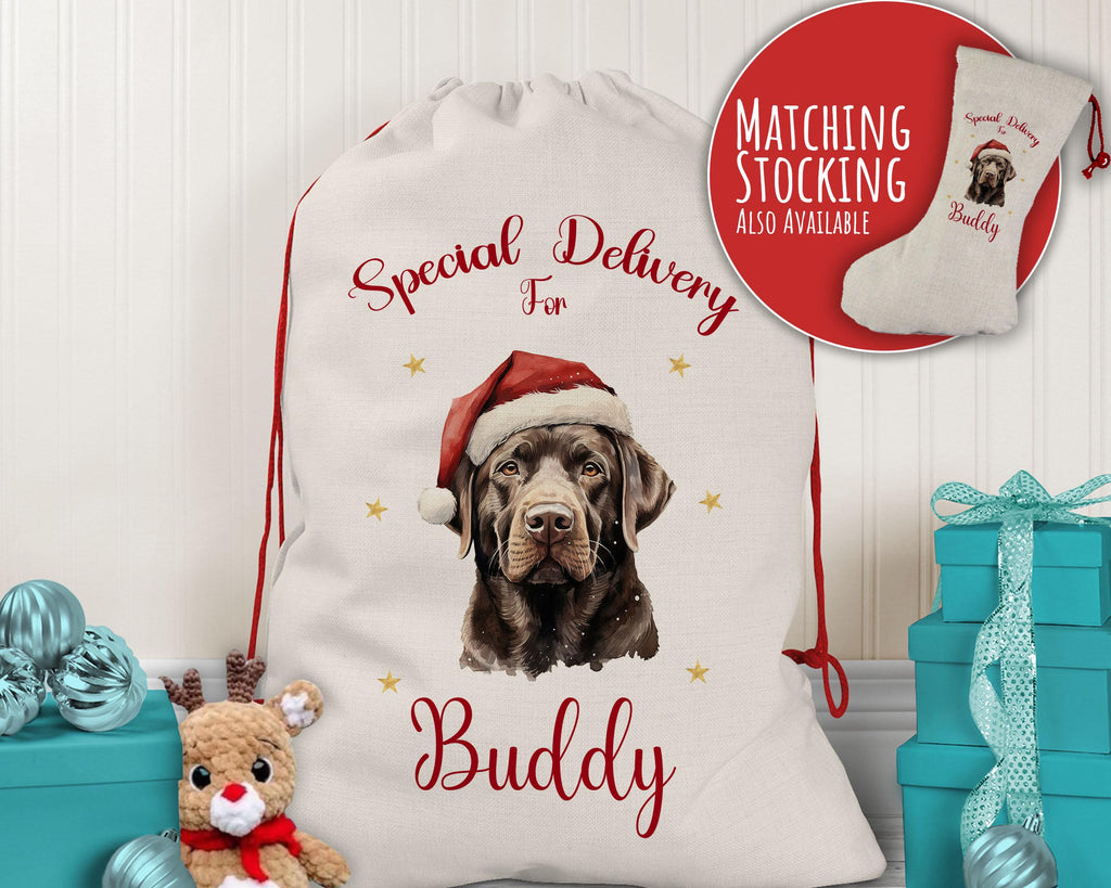 Personalised Chocolate Labrador Christmas Sack / Stocking - Great Decoration for under the Christmas tree and to include your beloved pooch in the Christmas morning fun!