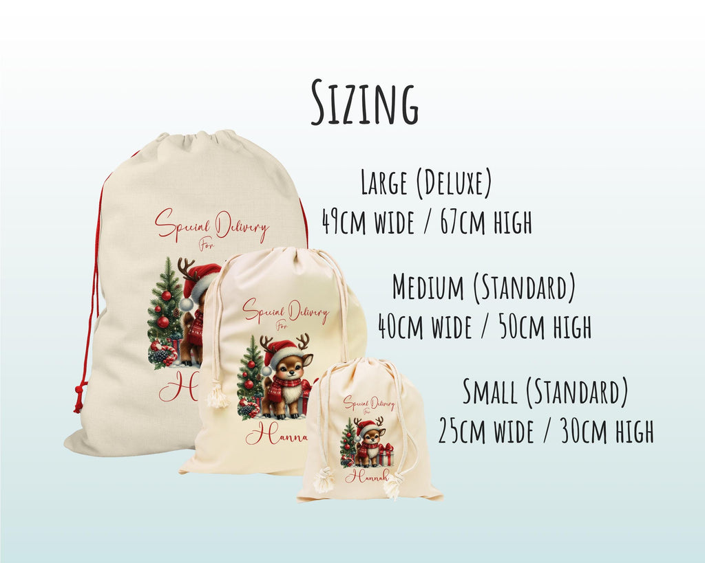 Personalised Christmas Sack - Santa Sack for Kids Presents Xmas Reindeer Tree Design Stocking Christmas Eve Bag Box for Girls & Boys XS018
