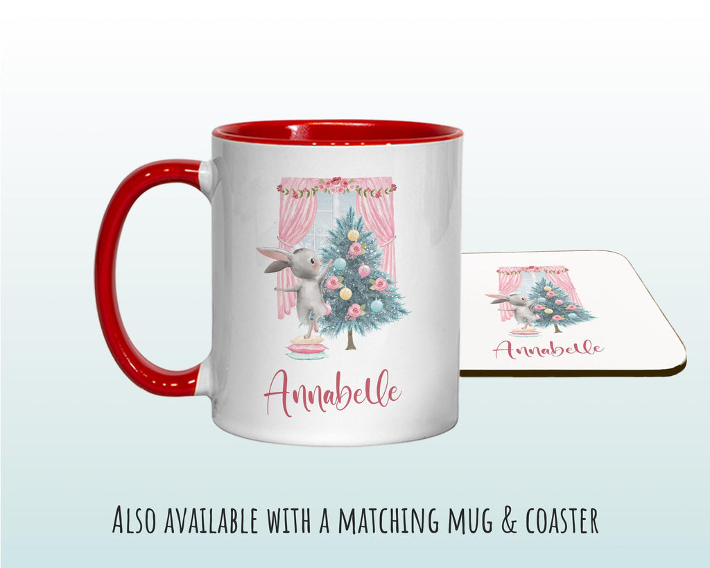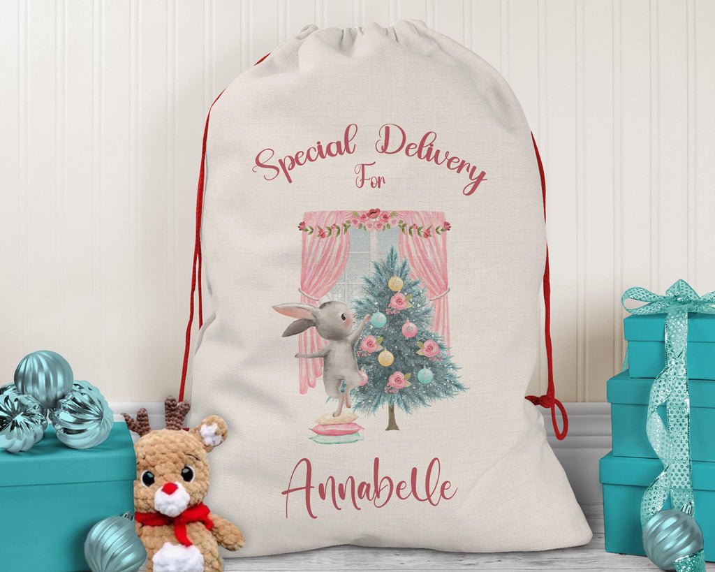 Large Personalised Bunny Rabbit and Christmas Tree Design Christmas Sack / Stocking - Great Decoration for under the Christmas tree for your little ones. Designs available for both boys and girls.