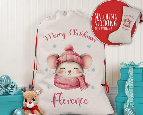 Large Personalised Xmas Cute Mouse Design Christmas Sack / Stocking - Great Decoration for under the Christmas tree for your little ones. Designs available for both boys and girls.