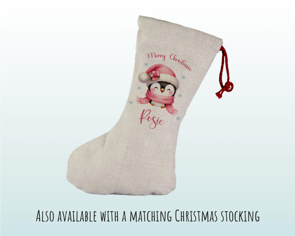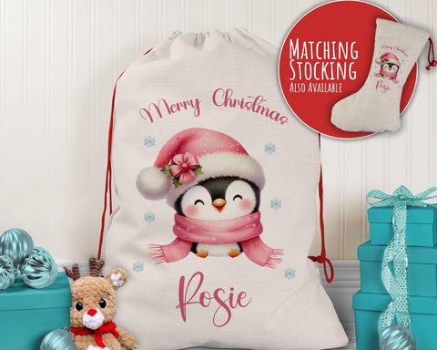 Large Personalised Xmas Cute Penguin Design Christmas Sack / Stocking - Great Decoration for under the Christmas tree for your little ones. Designs available for both boys and girls.