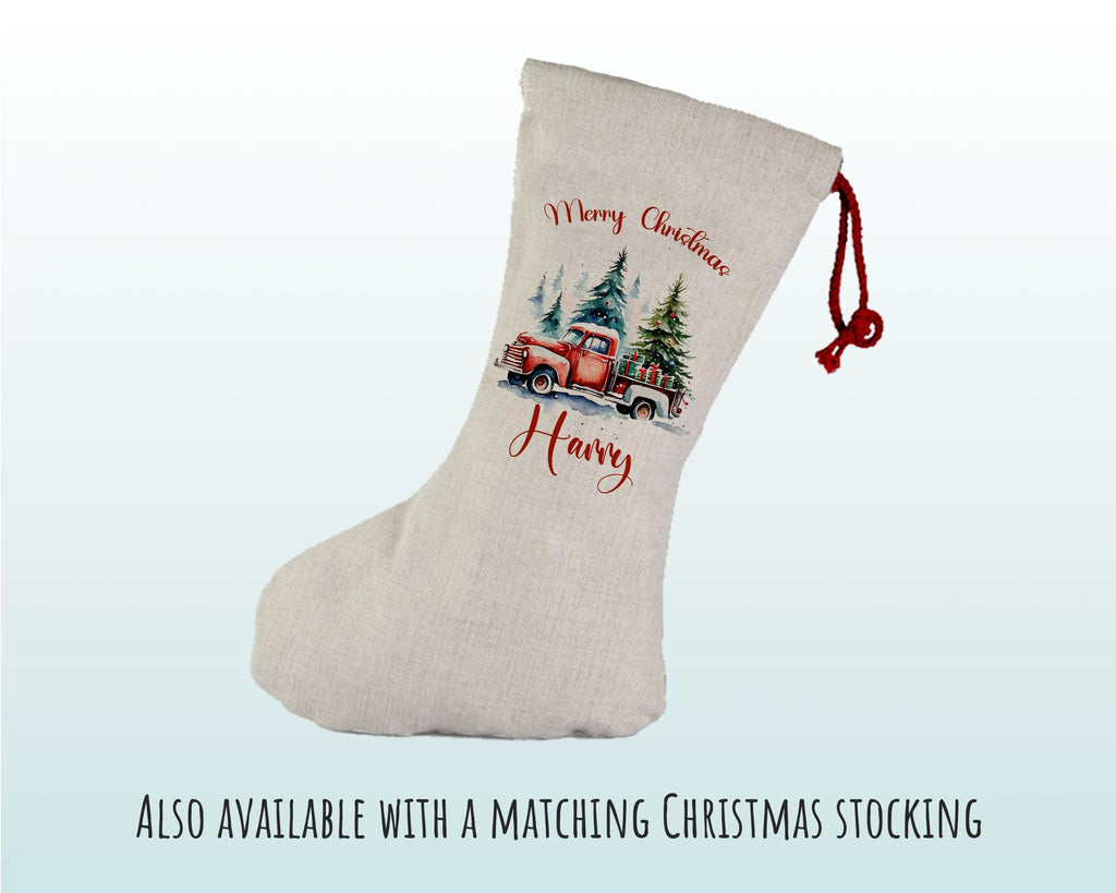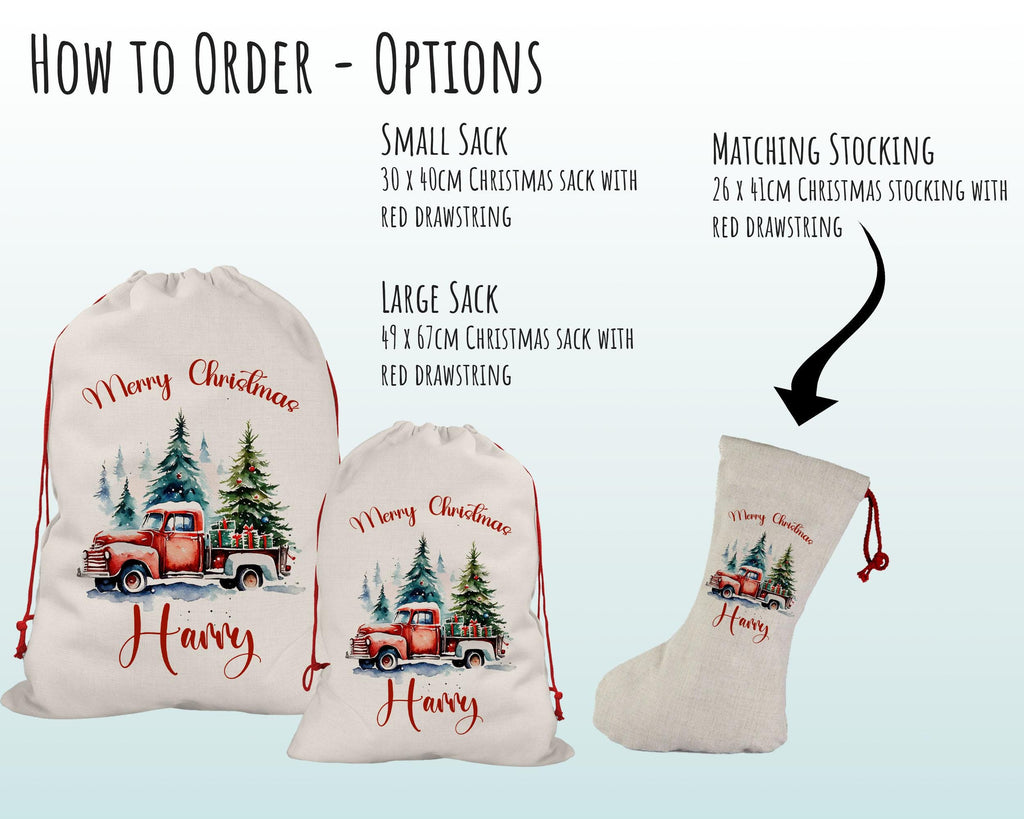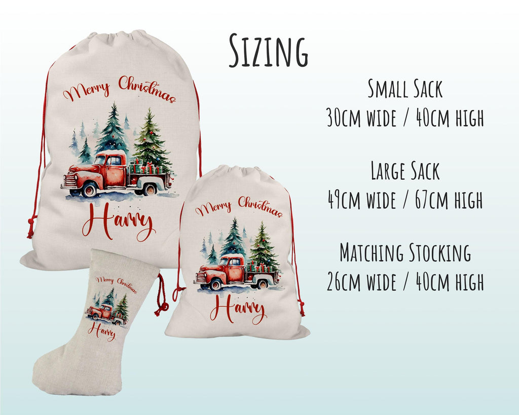 Large Personalised Xmas Tree and Truck Design Christmas Sack / Stocking - Great Decoration for under the Christmas tree for your little ones. Designs available for both boys and girls.