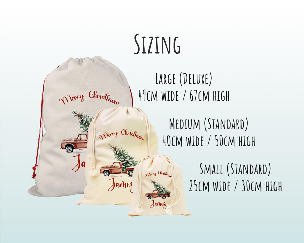 Personalised Christmas Sack - Santa Sack for Kids Presents Xmas Tree and Truck Design Stocking Christmas Eve Bag Box for Girls & Boys XS049