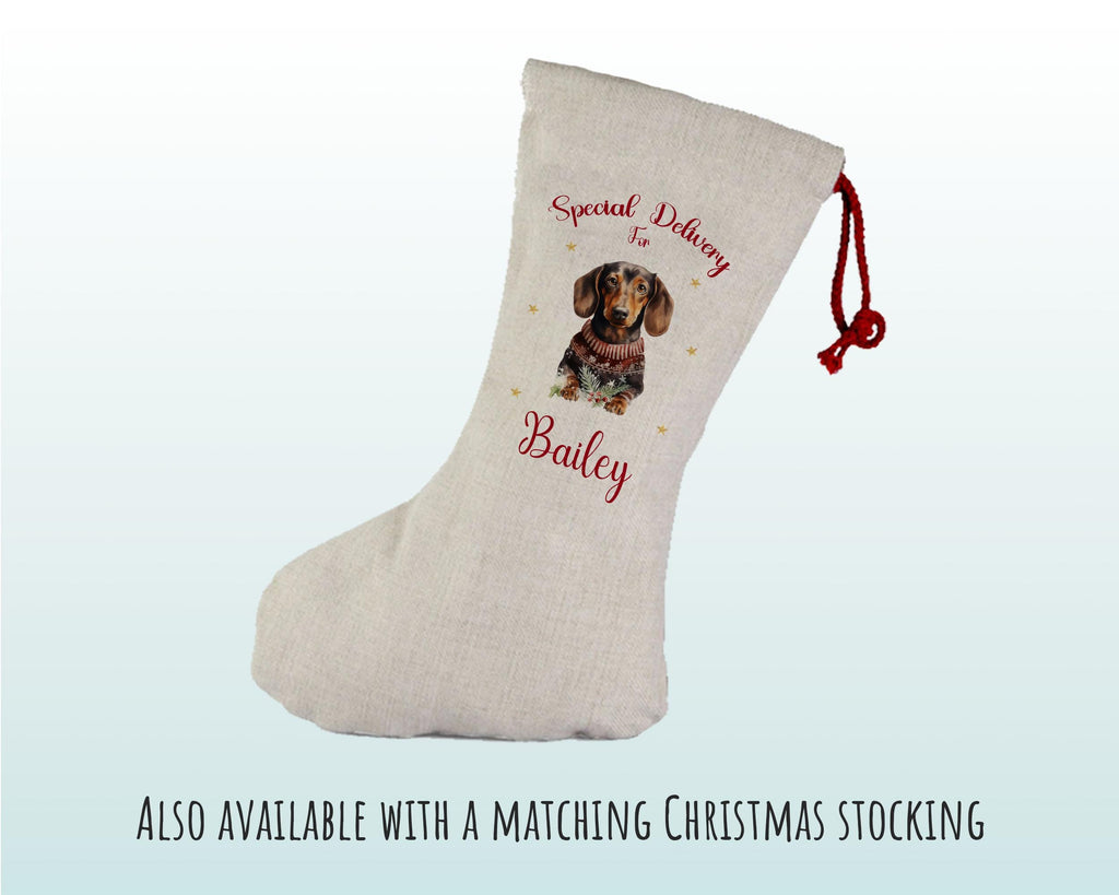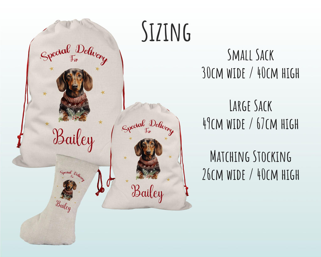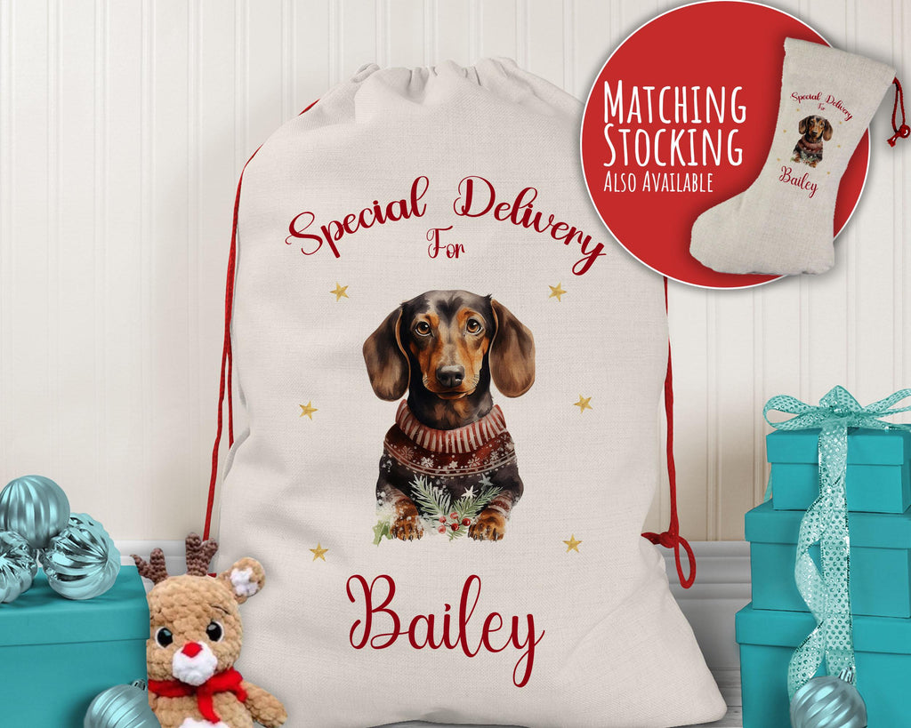 Personalised Dachshund Christmas Sack / Stocking - Great Decoration for under the Christmas tree and to include your beloved pooch in the Christmas morning fun!