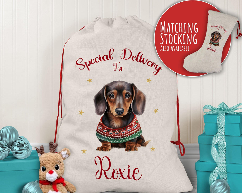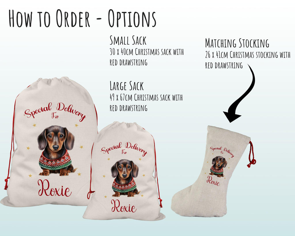 Personalised Dachshund Christmas Sack / Stocking - Great Decoration for under the Christmas tree and to include your beloved pooch in the Christmas morning fun!