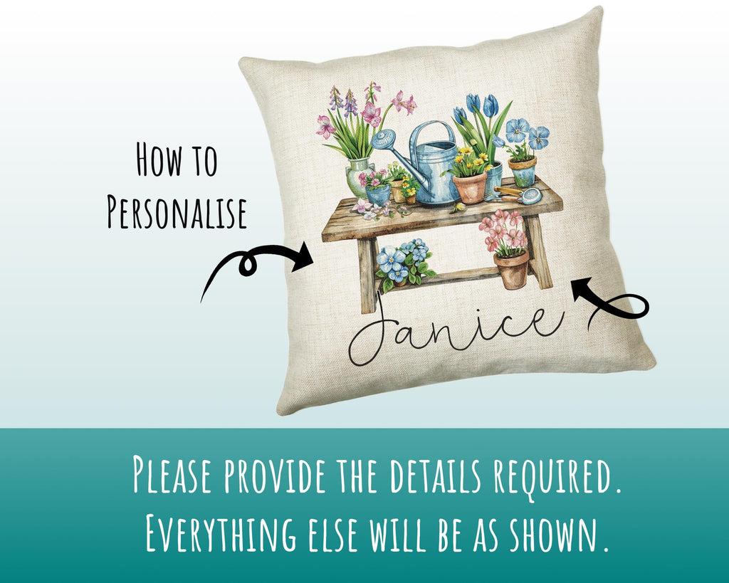 Personalised Gardening Gift Cushion Printed Name Design - Cushion Throw Pillow for Him Her - Retirement Gift Idea for Nan Grandad SMC035