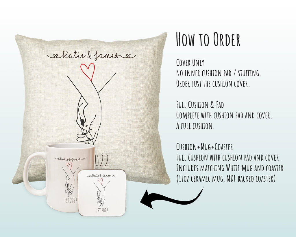 Personalised Holding Hands Gift Cushion Two Years Custom Design Gift Present - Wedding Cushion Pillow Gift STC0099