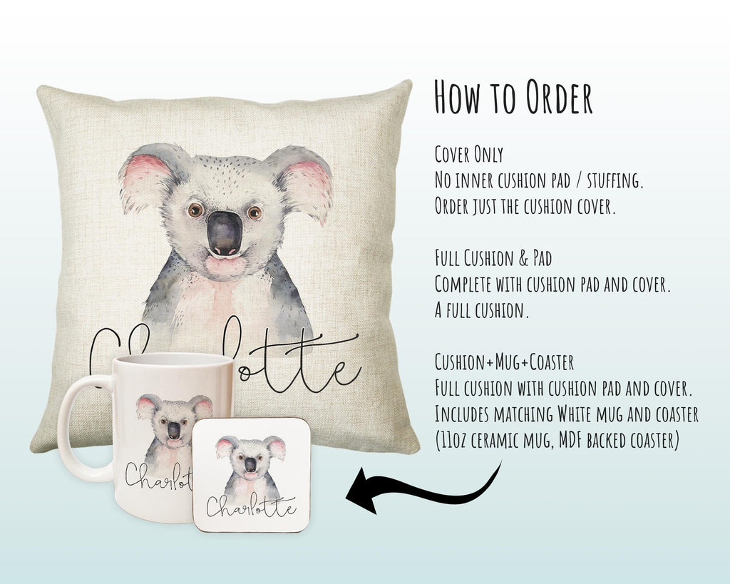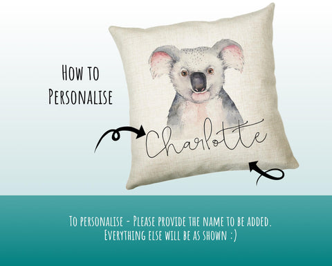 Personalised Koala Bear Cushion Gift Printed Name Design - Cushion Throw Pillow Gift For Boys Nursery Bedroom Birthday Christmas Gift CS029