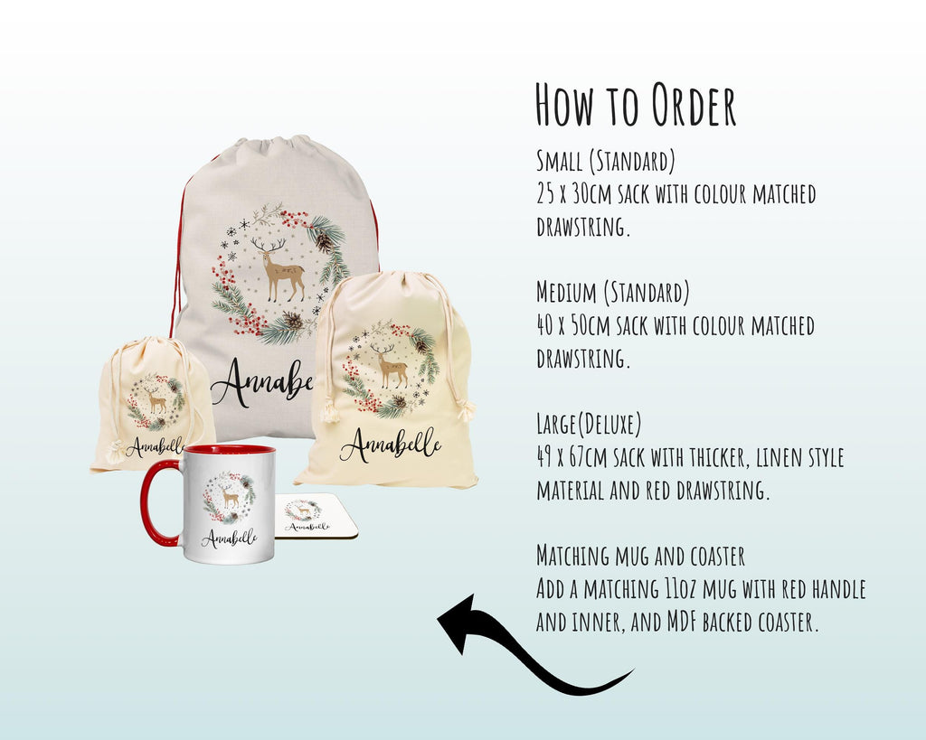 Personalised Large Christmas Reindeer Sack Name Xmas Stocking Gift Stocking Rudolph Sack Red Drawstring Christmas Decoration SK005