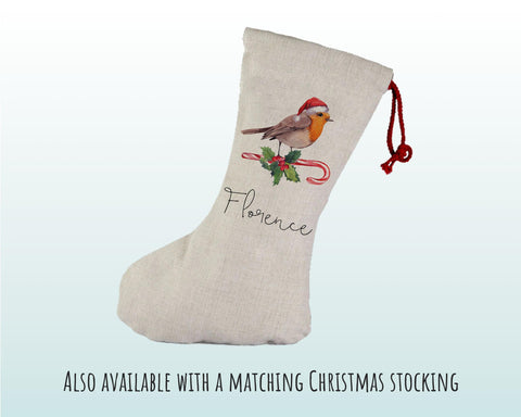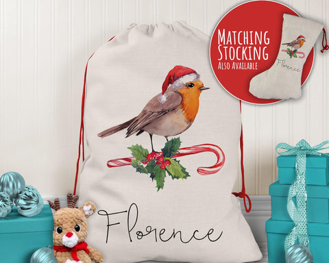 Personalised Large Christmas Robin Sack Name Xmas Stocking Gift Stocking Custom Named Sack Red Drawstring Christmas Decoration SK007