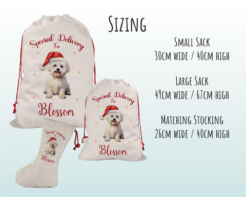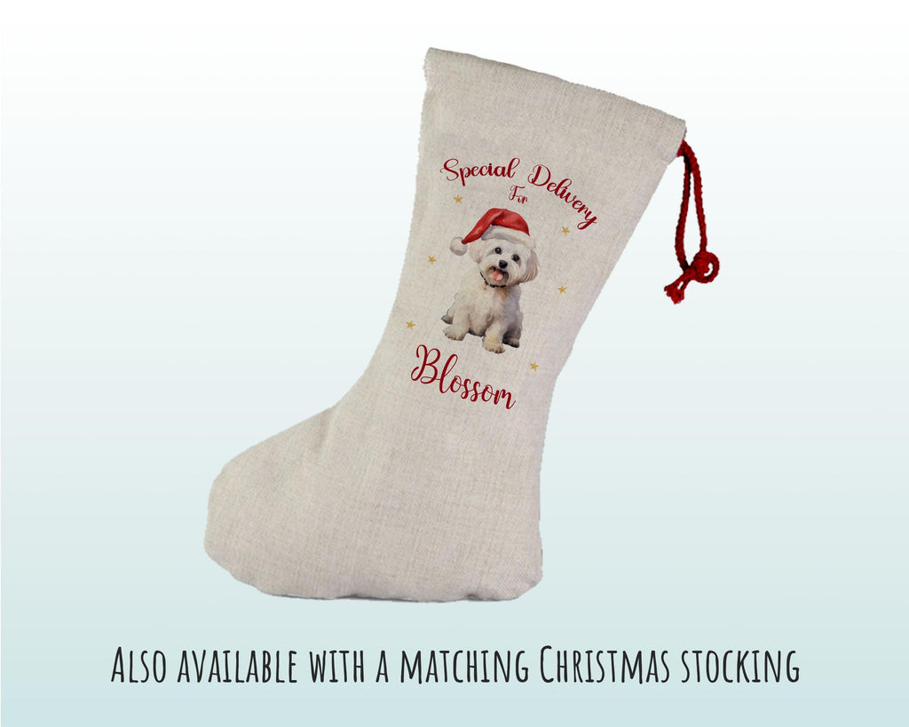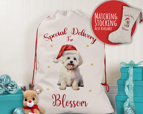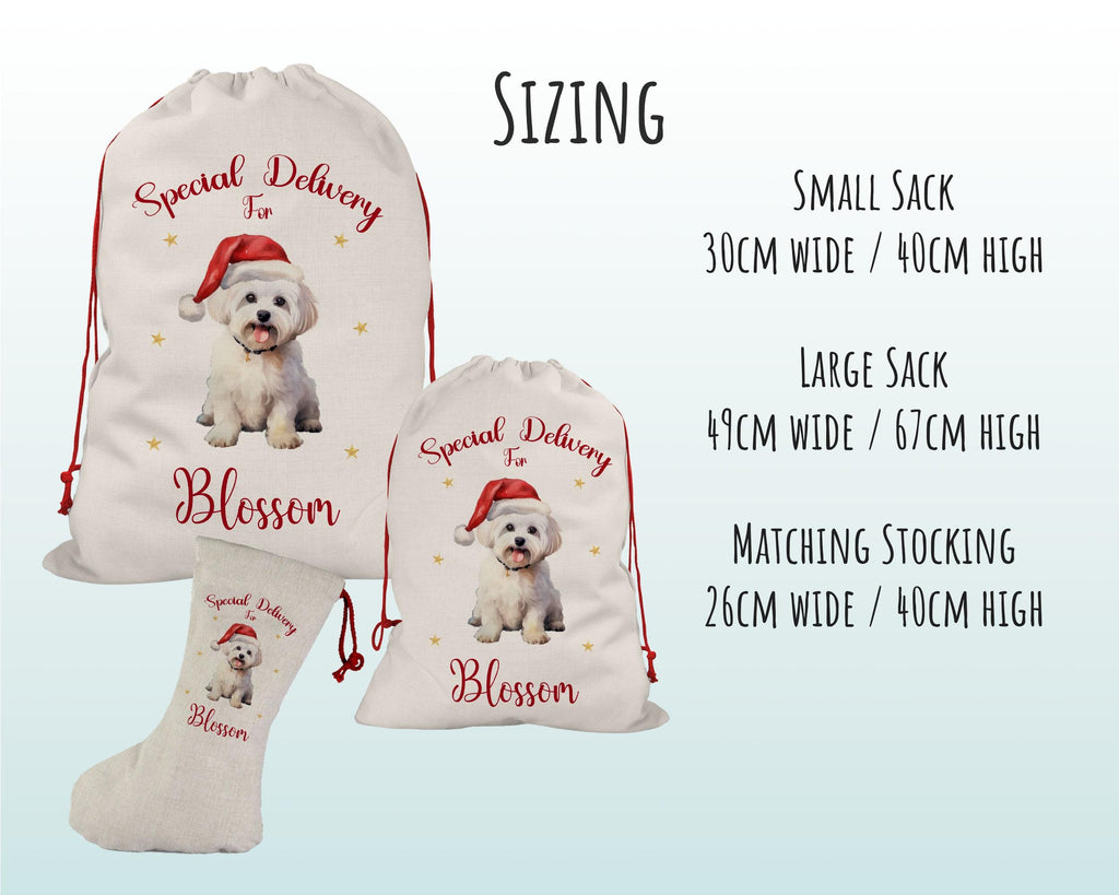 Personalised Maltese Christmas Sack / Stocking - Great Decoration for under the Christmas tree and to include your beloved pooch in the Christmas morning fun!