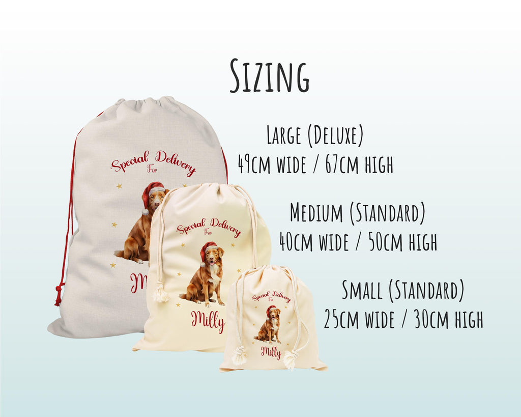 Personalised Nova Scotia Duck Tolling Retriever Christmas Sack / Stocking - Great Decoration for under the Christmas tree and to include your beloved pooch in the Christmas morning fun!