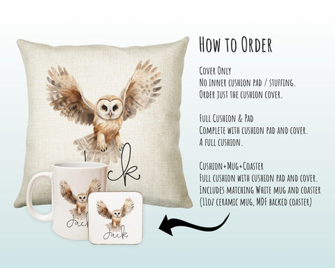 Personalised Owl Cushion Gift Printed Name Design - Cushion Throw Pillow for Him Her - Wild Birds of Prey Lover Gift Idea SMC011