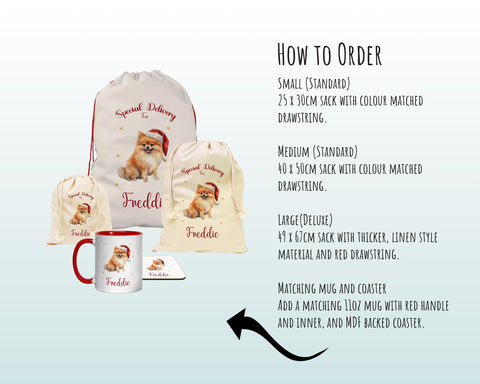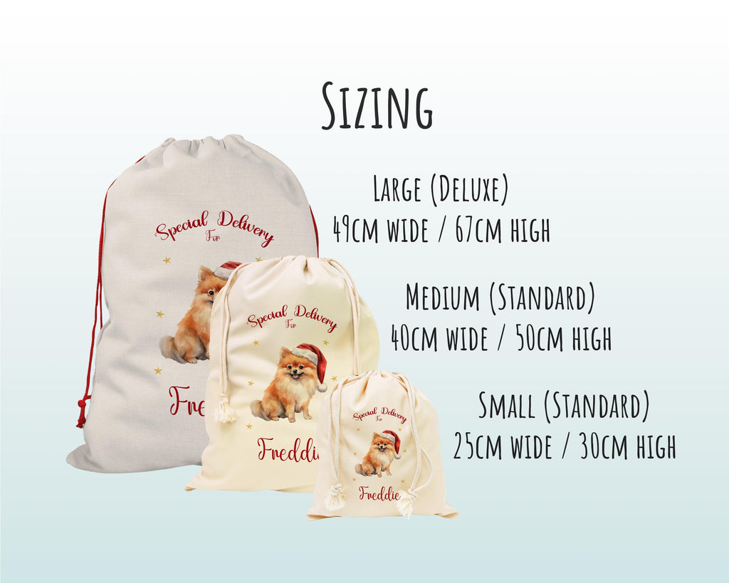 Personalised Pomeranian Christmas Sack / Stocking - Great Decoration for under the Christmas tree and to include your beloved pooch in the Christmas morning fun!