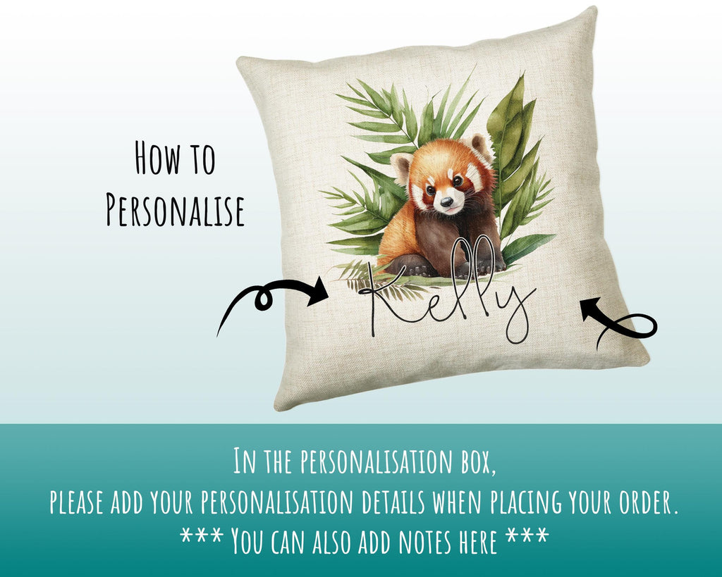 Personalised Red Panda Gift Cushion Printed Name Design - Cushion Throw Pillow for Him Her - Panda Bear Lover Gift Idea Animal Lover GMC001