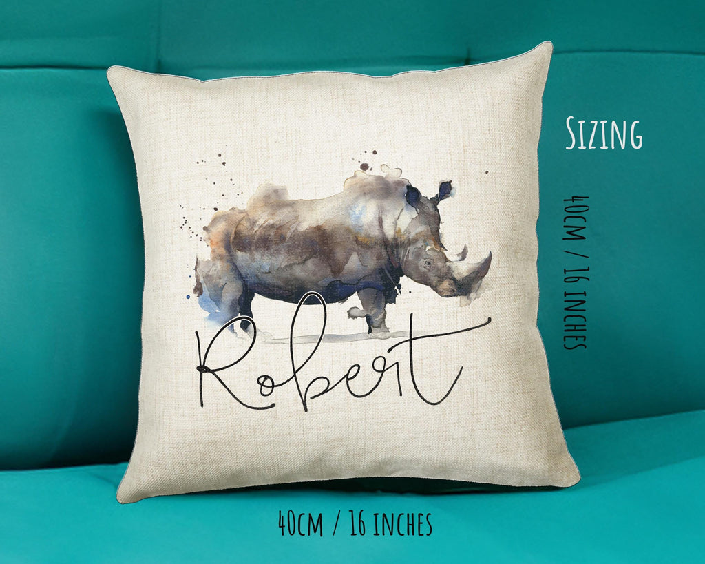 Personalised Rhino Cushion Gift Printed Name Design - Cushion Throw Pillow Gift For Mum Dad Friend Bedroom Birthday Christmas Gift CS085