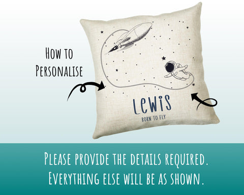 Personalised Rocket Astronaut Cushion Gift Printed Name Design - Pillow Gift For Girls Boys Nursery Bedroom Decor Gift CS452