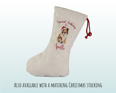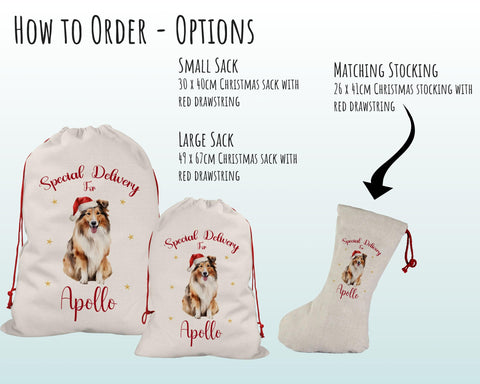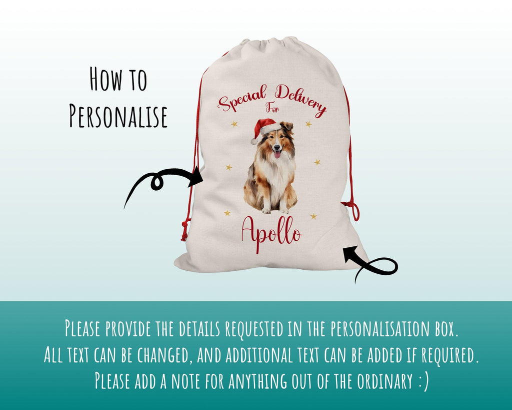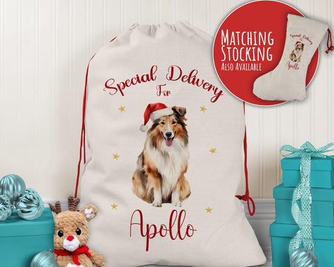 Personalised Shetland Sheepdog Sheltie Christmas Sack / Stocking - Great Decoration for under the Christmas tree and to include your beloved pooch in the Christmas morning fun!