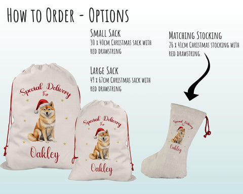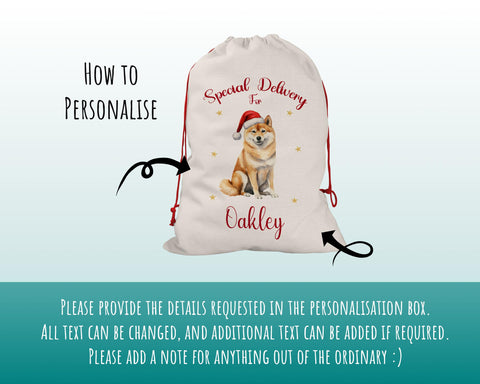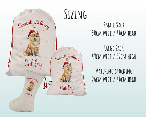 Personalised Shiba Inu Christmas Sack / Stocking - Great Decoration for under the Christmas tree and to include your beloved pooch in the Christmas morning fun!