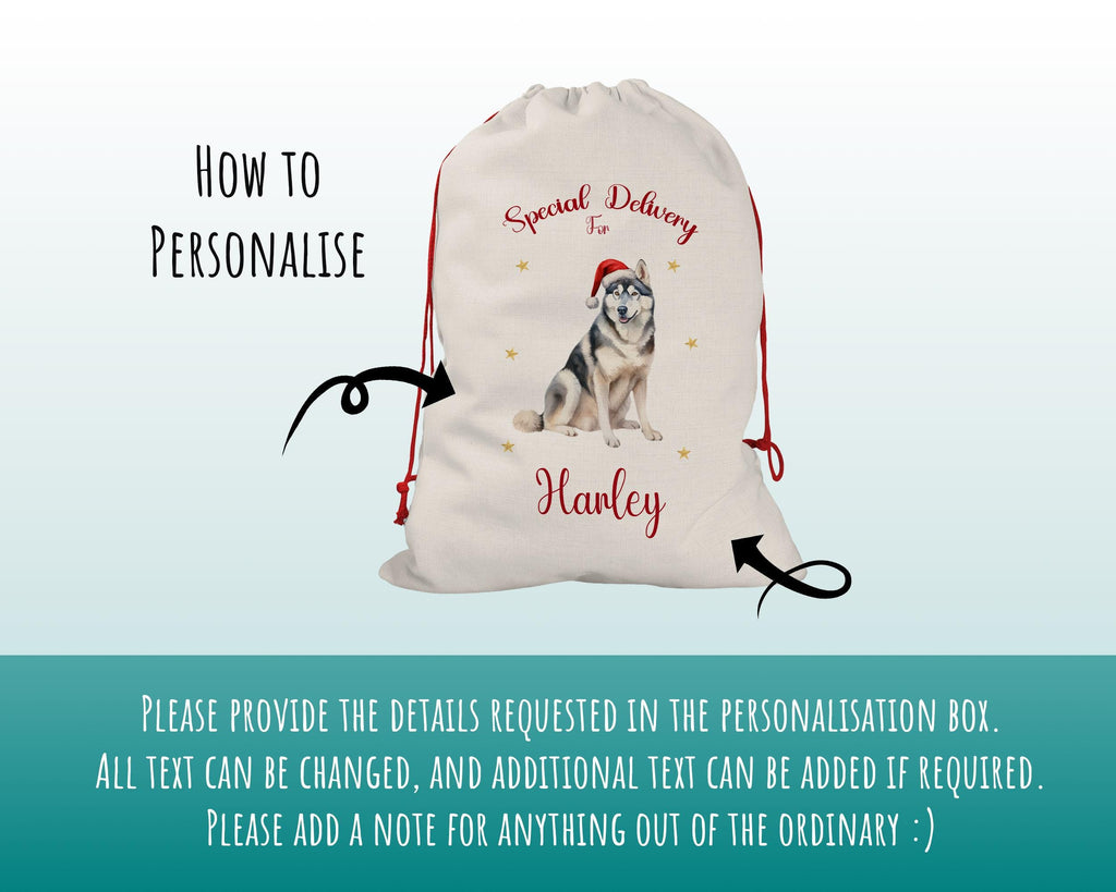 Personalised Siberian Husky Christmas Sack / Stocking - Great Decoration for under the Christmas tree and to include your beloved pooch in the Christmas morning fun!