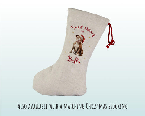 Personalised Staffordshire Bull Terrier Christmas Sack / Stocking - Great Decoration for under the Christmas tree and to include your beloved pooch in the Christmas morning fun!