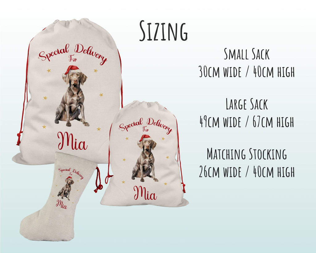 Personalised Weimaraner Christmas Sack / Stocking - Great Decoration for under the Christmas tree and to include your beloved pooch in the Christmas morning fun!