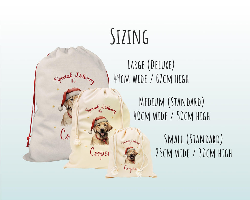 Personalised Yellow Labrador Christmas Sack / Stocking - Great Decoration for under the Christmas tree and to include your beloved pooch in the Christmas morning fun!