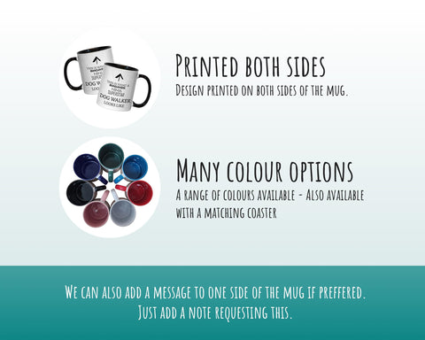Keywords: dog walker, dog walking, dog lover, dog owner, mug, gift, coffee mug, 11oz mug, tea cup, hot drink mug, coffee cup, printed mug, graphic mug, ceramic mug