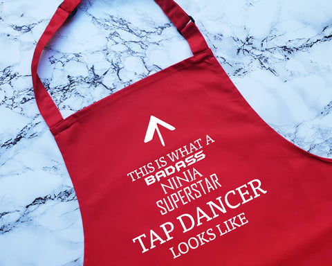 Keywords: tap dancing, dancer, dance coach, modern dance, apron, gift, cooking apron, kitchen apron, gift idea, barbecue apron, chefs apron, full apron, bbq apron, head chef apron